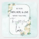 La belle citation de l'écriture sainte sur la foi, l'espérance et l'amour, est centrée avec des gerbes de roses crème dans les coins. Le fond de couleur sarcelle a un aspect aquarelle qui ajoute une touche de douceur au message. Cadeau idéal pour envoyer des vœux d'anniversaire de mariage religieux.