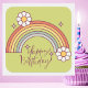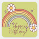 Sticker Carré Anniversaire Moderne Joyeux Rétro Arc-en-Ciel