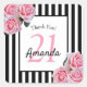 Sticker Carré Anniversaire rose roses rayures noires merci