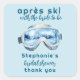 Autocollants Remerciements Apres Ski Fête de Mariage Thème Ski Sportif Aquarelle - Décoration personnalisée de mariage hivernal pour faveurs et cadeaux - Fête de Mariage Thème Après Ski - La décoration parfaite pour une fête de mariage ou un brunch de mariage sur le thème du ski ou de l'après-ski pour mettre en valeur vos faveurs et cadeaux. Avec une illustration aquarelle de lunettes de neige. Avec un mélange de police sportive rétro et de script amusant. Parfait pour une mariée qui aime le ski et les sports d'hiver. Personnalisez ces autocollants de mariage hivernal éditables avec tous les détails de votre événement.