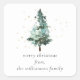 Souhaitez à vos amis ou à votre famille un joyeux Noël avec cet élégant et minimaliste aquarelle arbre de Noël d'hiver entouré de mousseux de parties scintillant d'or autocollant. L'autocollant est positionné sur une chute de fond de blanc pour représenter la neige blanche et nette. L'autocollant peut être personnalisé avec l'inclusion de votre nom de famille et l'autre texte de conception peut être conservé tel quel, édité ou supprimé. Vous pouvez utiliser l'autocollant pour n'importe quoi, de l'emballage actuel aux scellés d'enveloppe.
