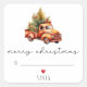 Aquarelle camion de sapin de Noël Joyeux autocollant carré de Noël.