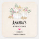 Autocollants d'affaires avec citrouilles blancs à l'aquarelle fantaisie avec accents de fausse parties scintillant or. Entouré de feuilles verts et de fleurs sauvages roses.