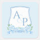 Sticker Carré Aquarelle Bleu Blanc Hydrangea Mariage Crest