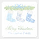 Sticker Carré Aquarelle Bleu & Blanc Noël Stockage Cadeau