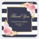 Sticker Carré Aquarelle bleu marine rose Mariage Merci