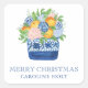 Sticker Carré Aquarelle Chinoiserie Mandarins Cadeau de Noël
