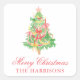 Sticker Carré Aquarelle Coquette Bow Christmas Tree