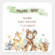 Sticker Carré Aquarelle Élégant Baby shower d'animaux de bois