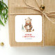 Sticker Carré Aquarelle mignonne Ours Joyeux Noël