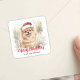 Sticker Carré Aquarelle Pomeranian à Santa Hat Joyeux Noël