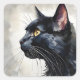 Sticker Carré Aquarelle Portrait de profil de chat noir Pose