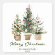 Sticker Carré Aquarelle Rouge Ornement Arbre Joyeux Noël