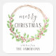 Sticker Carré Aquarelle rustique Holly Wreath Joyeux Noël