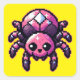 Cette image présente une représentation en pixel d'une araignée, rendue dans un style 8 bits charmant et rétro. Le corps de l’araignée est principalement rose, accentué par des teintes plus foncées et des reflets bleu clair, créant un contraste saisissant par rapport à son contour noir. Cet arachnid pixelisé dégage une atmosphère ludique mais pointue, rappelant l'esthétique classique des jeux vidéo. Le design de charme évoque le symbolisme lié à la chance et à la protection, tandis que les couleurs rose et noir ajoutent des couches de mystère et de complexité. Le style pixel art évoque non seulement la nostalgie, mais aussi l'art complexe impliqué dans les créations numériques.