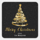 Sticker Carré Arbre à ruban noir or Joyeux Noël