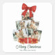 Sticker Carré Arbre de Noël de famille au ruban rouge aquarelle