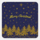 Sticker Carré Arbre de Noël en or brillant, étoiles, neige sur b