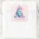 Sticker Carré Arbre de Noël Pastel rose et bleu Whimsical