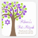 Sticker Carré Arbre moderne de vie Bat mitzvah vert pourpre