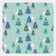 Sticker Carré Arbres de Noël, arrière - plan bleu