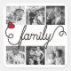 Créez votre propre art typographique de "famille" avec ce design mettant en vedette une belle police de caractères cursive moderne accentuée d'un cœur rouge. Remplacez les exemples de photos par les vôtres pour un cadeau personnalisé. C'est un merveilleux cadeau pour une réunion de famille, un anniversaire de mariage, la fête des Mères, la fête des Pères, un anniversaire et d'autres occasions spéciales. REMARQUE : les exemples de photos sont en noir et blanc. Si vos photos sont en couleur et que vous souhaitez les rendre en noir et blanc, remplacez simplement les exemples, cliquez sur le bouton "Personnaliser", sélectionnez vos photos et dans le panneau Filtres sélectionnez "Noir & Blanc". Veuillez me contacter si vous avez besoin d'aide pour la personnalisation.