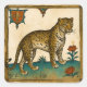 Sticker Carré Art médiéval du léopard aux fleurs rouges