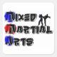 Arts martiaux mélangés écrits dans la police asiatique de style, écriture de l'anglais noir. Le MIXED MARTIAL ART d'initiales sont accentués avec le bleu alternatif et le rouge posé s'est fané format de encadrement pour représenter le surnom de raccourci du sport dans ses couleurs traditionnelles. Sur le bord de martial, les silhouettes de deux combattants de MIXED MARTIAL ART sont économiquement, un bleu de port et gants d'un rouge.