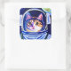 Sticker dans un astronaute de chat gingembre mignon dans une combinaison spatiale, contre l'espace, avec la Terre dans l'arrière - plan