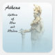sticker carré avec une image sur le bleu dégradé d'une statue d'Athéna, la déesse grecque de la sagesse, symbolisée par la Perle de sagesse qu'elle tient dans sa main tendue et de guerre et d'artisanat. Voir confettis assortis, sac de faveur, étiquette de faveur et papier d'emballage. Voir l'ensemble de la collection Toga Sticker dans les INVITATIONS | Section Stickers & Étiquettes.