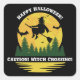 Sticker Carré Attention Halloween Sorcière qui traverse sur un b