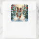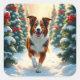 Sticker Carré Australian Shepherd Christmas Tree Farm Painting