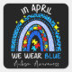 Sticker Carré Autisme arc-en-ciel En Avril Nous Portons Blue Aut