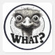 Fureur et incrédulité emplumées. Cette feuille d'autocollants présente un ému en colère exigeant "Quoi ?"—un design audacieux et expressif pour les amateurs d'humour animalier impertinent. DSE Graphics | Art avec Attitude.