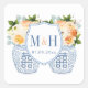 Sticker Carré Automne Chinoiserie Monogramme Mariage Faveur