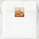 Stickers avec une illustration rustique avec des citrouilles oranges et des feuilles d'automne. Une ambiance grunge d'automne.