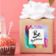 Sticker avec le texte : Soyez génial écrit à l'intérieur d'un cadre blanc avec une fausse bordure de feuille d'or. L'arrière - plan est un design abstrait artistique sophistiqué. Peinture aquarelle avec les couleurs mélangeant et mélangeant créant un beau look de marbre à couches fluides.