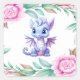 Sticker Carré Baby shower de fille de pivoine de dragon violet e