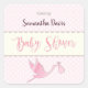 Sticker Carré Baby shower de la petite fille de la cigogne rose