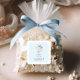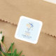 Sticker Carré Baby Shower de Mariée aux Pétales Bleus et Prosecc