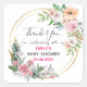 Joli et ceinturé rose, pêche et vert floral de l'aquarelle "merci" autocollant carré pour un baby shower. Cet autocollant fantaisiste a un arrière - plan blanc et élégant gris foncé et rose chaud texte. Personnalisez en ajoutant votre nom et votre date de baby shower. Vous pouvez même modifier la couleur du texte et le style de police à l'aide de l'option personnaliser.