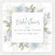 Sticker Carré Baby Shower Élégant Floral Roses Bleu Poussiéreux