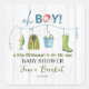 Scellez vos faveurs ou enveloppes avec cet autocollant rustique pour une baby shower sur le thème de la pêche, conçu dans un bleu aquarelle doux avec une canne à pêche, un gilet, des bottes et des leurres. Parfait pour une célébration de l'arrivée d'un petit pêcheur, il ajoute une touche coordonnée aux faveurs de fête, aux sacs de remerciement et aux décorations.