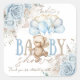 Sticker Carré Baby Shower Garçon Ours en Peluche Fleurs Pampas B