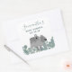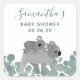 Mignonne autocollant de baby shower personnalisé avec un bébé koala sur le dos de maman marchant à travers l'eucalyptus.
