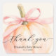 Une citrouille mignonne, nouée avec un ruban rose élégant, met en valeur ces autocollants de baby shower fille, comportant "merci", le nom de la future maman et la date du baby shower. (Disponible également en bleu et ivoire.) ARTICLES assortis dans notre collection.