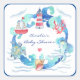 Sticker Carré Baby shower Nautique Neutre Sexe Aquarelle