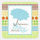 Sticker Carré Baby shower Parapluie Bleu & Points Boho