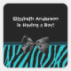 Sticker Carré Baby shower Turquoise Et Black Zebra Print Boy