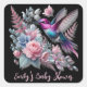 Sticker Carré Baby shower Vibrant De Colibri Et De Fleurs Roses